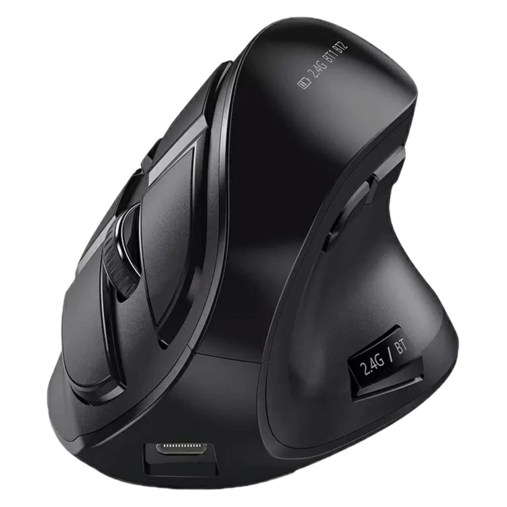 خانه ماوس ماوس بی‌سیم مدل ارگونومیک 3modes، دارای 9 کلید، بی‌صدا، قابلیت اتصال به 3 دستگاه به‌طور همزمان، طراحی ارگونومیک عمودی، رابط دانگل USB، بلوتوث، باتری لیتیوم- یونی قابل شارژ، دقت 1600 DPI، دارای نمایشگر وضعیت باتری