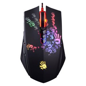 ماوس گیمینگ باسیم بلادی مدل A60 با حسگر مادون قرمز، دارای 8 کلید، رابط پورت PS/2 or USB، دقت 4000 DPI، دارای نورپردازی RGB، طراحی ارگونومیک