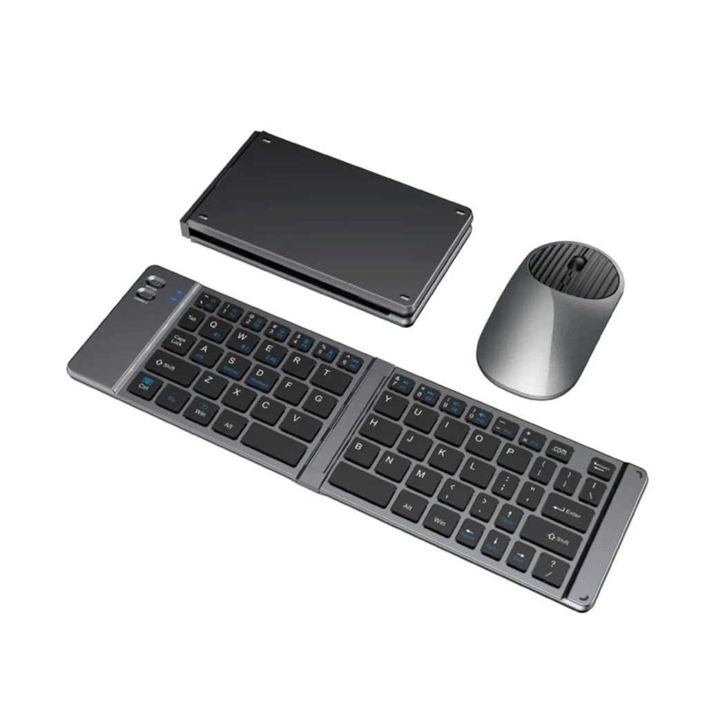 این مجموعه صفحه کلید و ماوس بی سیم بلوتوثی قابل حمل می توانید همزمان از لپ تاپ، تبلت و تلفن همراه خود استفاده کنید. با فشار دادن یک دکمه به راحتی سوئیچ کنید. این صفحه کلید و ماوس چند منظوره با طیف گسترده ای از سیستم عامل ها از جمله Windows، Mac OS، iPad iOS، Android و غیره سازگار است. صفحه‌کلید و ماوس بی‌سیم از مواد ABS با کیفیت بالا ساخته شده‌اند که به شما امکان می‌دهد شیب بهینه را حفظ کنید، که از آسیب رسیدن به مچ دست در طول جلسات طولانی تایپ جلوگیری می‌کند. برای اتصال این کیبورد قابل حمل به دستگاه از بلوتوث استفاده میشود و تا 10 متر برای وصل شدن را ساپورت می‌کند. این صفحه کلید و ماوس قابل حمل دارای 3 اتصال بلوتوث است و به شما امکان می دهد همزمان به 3 دستگاه متصل شوید. برای راحتی بیشتر در تایپ همیشه می توانید صفحه کلید را با دستگاه های خود جفت کنید. باطری قابل شارژ داخلی، کیبورد و ماوس قابل شارژ را می توان از طریق کابل Type-C موجود در داخل جعبه شارژ کرد. به‌علاوه، وقتی از ترکیب صفحه کلید تاشو و ماوس استفاده نمی‌شود، عملکرد خواب خودکار باعث صرفه‌جویی در انرژی برای اتصال مجدد سریع‌تر می‌شود. صفحه‌کلید بدون سیم شارژی دارای 66 کلید برای داشتن تایپی سریع و راحت است؛ کلیدها به دلیل ارتفاع کوتاهی که دارند فوق‌العاده بی‌صدا هستند و باعث هواس‌پرتی شما یا اطرافیان‌تان نمی‌شوند.